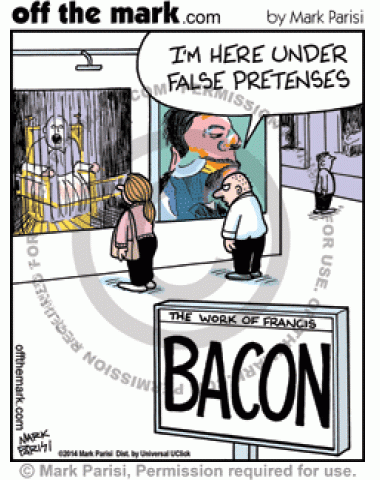 Misleading Bacon Exhibit A man goes to a Francis Bacon exhibit thinking it was going to be actual bacon.