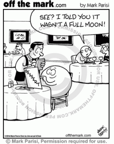 Moon Isn't Full The moon orders dessert, so it's not full yet.