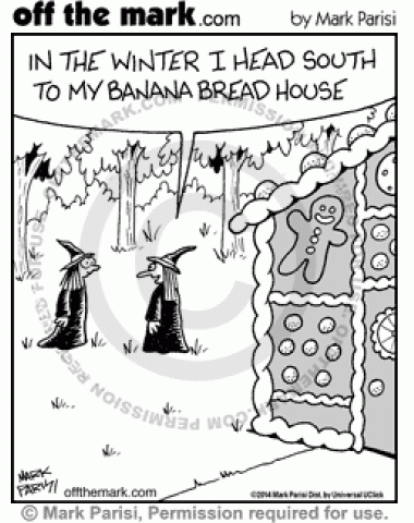 Witch's Vacation A witch goes south for the winter, where she stays in a banana bread house.