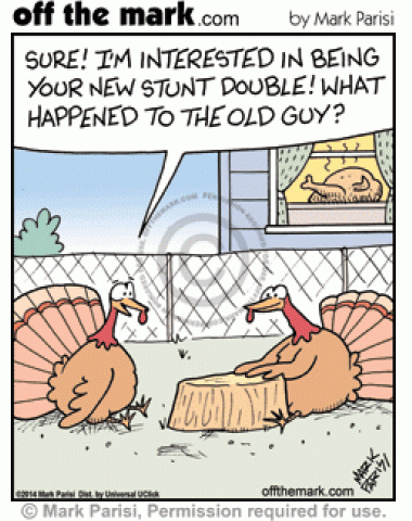 Turkey Stunt Double A turkey hires a stunt double so he won't be killed on Thanksgiving.