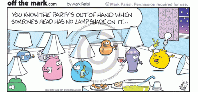 Lamp Party Party's out of hand because one lamp's head has no lampshade.