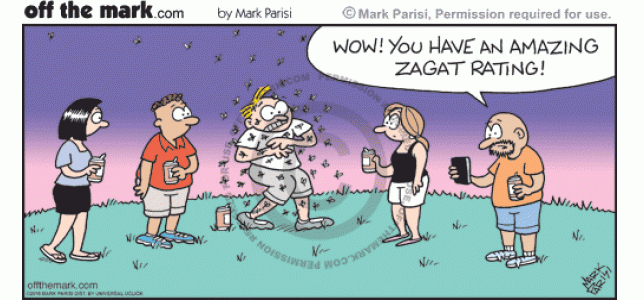 Mosquito Zagat Rating Man is rated as excellent food for mosquitos by Zagat.