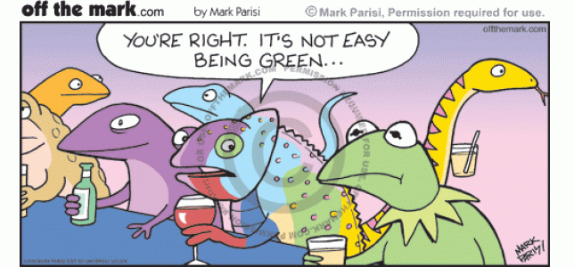 Chameleon Can't Turn Green Chameleon sympathizes with Kermit that it's not easy to be green.