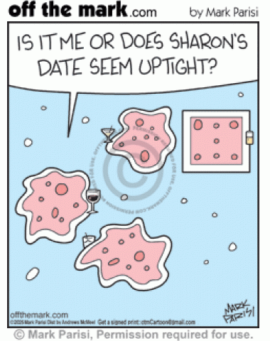 Square Amoeba Date Seems Uptight Microscopic blob amoebas at party think stiff squared bacteria seemed up tight.
