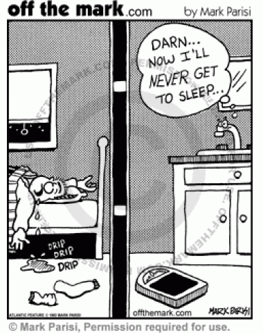 A tap can't get to sleep because a man's mouth keeps dripping.