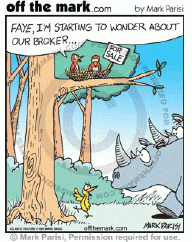 Birds begin to doubt their broker when he tries to sell their house to rhinos.