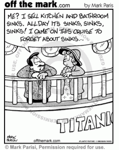 Titanic Sinks A man who sells sinks takes a cruise on the Titanic to forget about sinks.