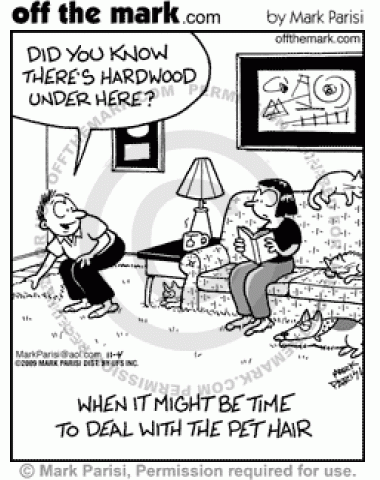 Pet Hair Carpeting Man discovers he has hardwood floors under his carpet of pet hair.