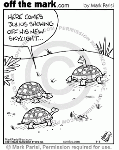 Turtle's Skylight Turtle pokes head through skylight at the top of his shell, making others envious.