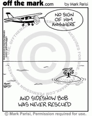 Sideshow Bob gets trapped on a desert island because the rescue plane thinks he's a palm tree.