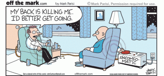 Uncomfortable Chair Invention For Unwelcome Guests Man in robe dials painful backache seat so late night visitor leaves home.