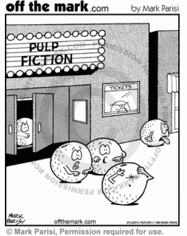 Oranges come out of the movie theater after watching Pulp Fiction.