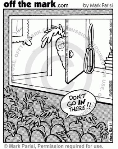 A carrot in a horror movie goes into a room with a peeler in it.