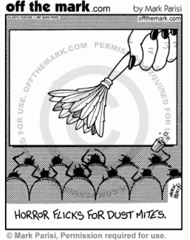 Dust Mite Horror Movies Dust mite horror movies have feather dusters in them.