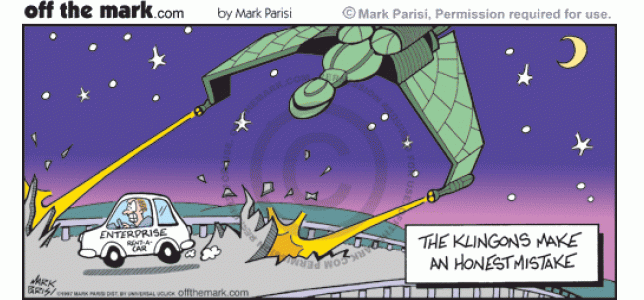 Klingon's mistakenly shoot at Enterprise rental car.</p>