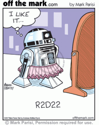 R2D2's Tutu R2D2 sees himself wearing a tutu and likes it.