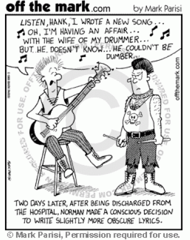Singer's lyrics reveal that he is having affair with drummer's wife.</p>
