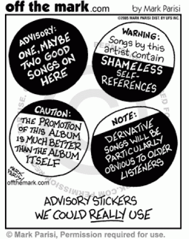 Several music advisory stickers that would be useful on music cd covers.