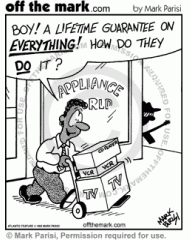Lifetime Guarantee A man is surprised that a store has a lifetime guarantee, but his life is about to end.