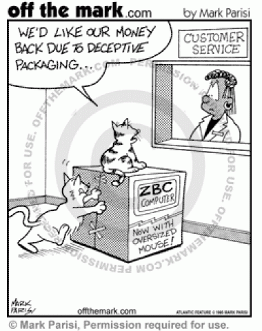 Cats Return Computer Cats return a computer after buying it by accident because they thought it came with an oversized mouse.