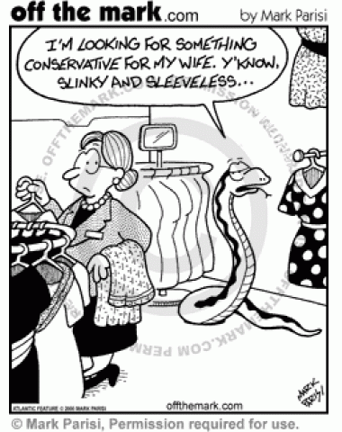 Snake Wife Shopping A snake is shopping for a conservative dress for his wife.