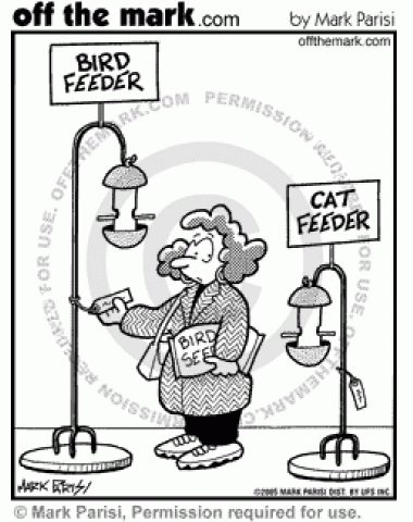 A cat feeder is a low bird feeder so that the cats can catch the birds.