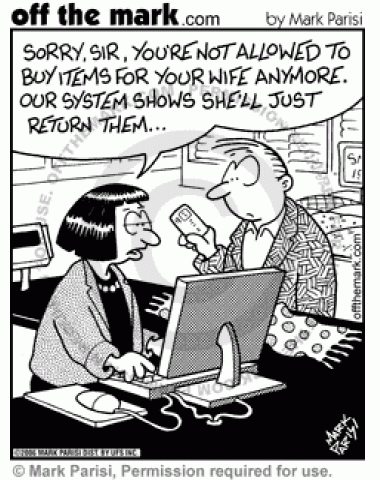 Online Shopping Denied Husband denied online shopping because wife returns too many purchases.