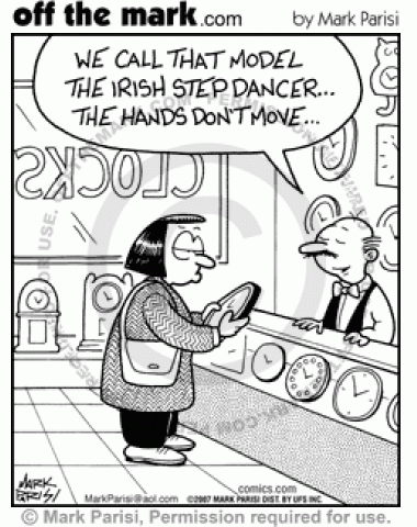 The Irish Step Dancer clock is named that because the hands don't move.