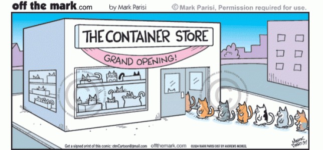 Container Store Grand Opening Excites Cat Customers Excited box shopper cats line up for new Container Store grand opening.