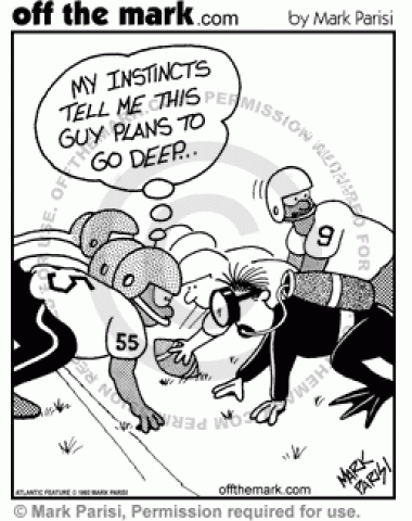 Football Go Deep A football player knows the opposing team will go deep because one of them is wearing scuba gear.