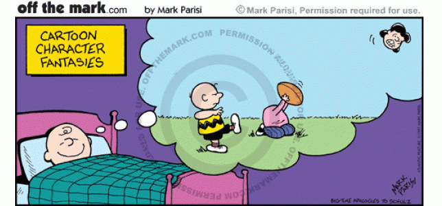 Cartoon Character Fantasies Charlie Brown imagines kicking Lucy's head off.
