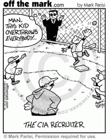 Baseball CIA Recruiter A CIA recruiter looks for kids at a baseball game.