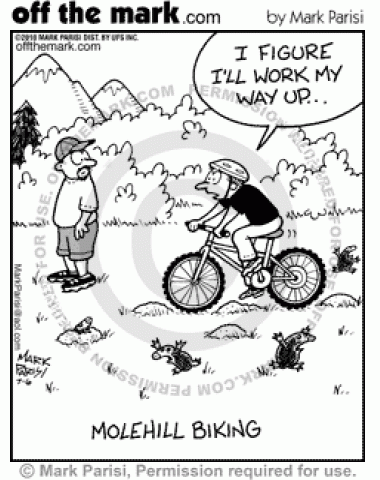 Molehill Bike Practice A bicyclist practices on molehills before trying mountains.
