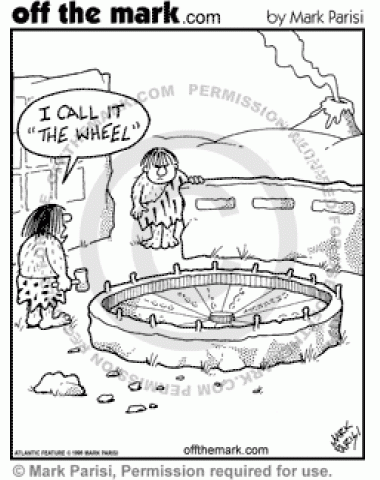 Caveman Invents Roulette Wheel A prehistoric homo erectus builds a wheel for gambling.