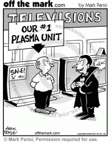 A vampire thinks that the plasma unit is the salesperson.