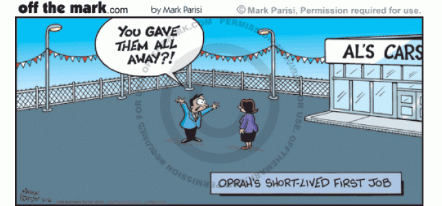 Oprah gave away all the cars at Al's Cars dealership.
