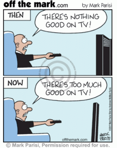 Quality TV changes Evolution Nothing good on tv to too many choices on tv.