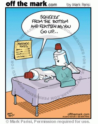 Tube of toothpaste asks for massage that squeezes from the bottom and flattens as it goes up,