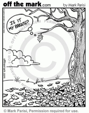Fall Leaf Breath The last leaf on a tree wonders if the other leaves left because of his bad breath.