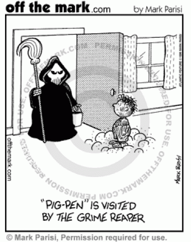 Pig-Pen Grim Reaper The grim reaper comes to collect Pig-Pen with a mop instead of a scythe.