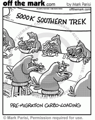 Pre-Migration Carbo-Loading Birds carbo-load on worms before migrating.