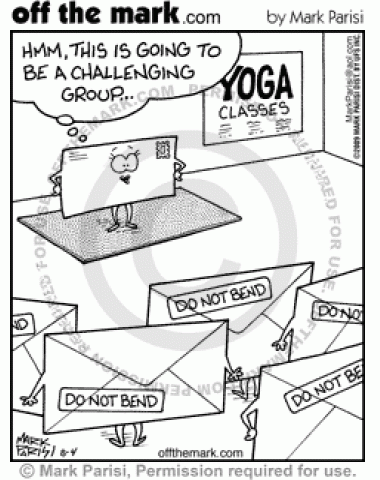 A whole class of envelopes frustrate a yoga instructor as they are all marked "do not bend."