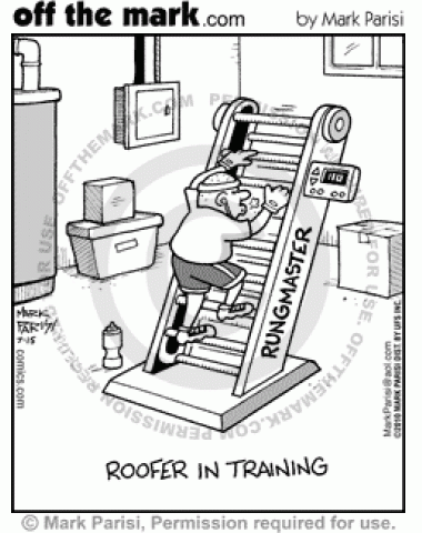 Roofer In Training Roofer in training practices climbing ladders on Rungmaster.