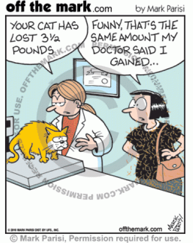 Cat Lost Weight The cat lost three pounds while the owner gained that same amount in cat hair.