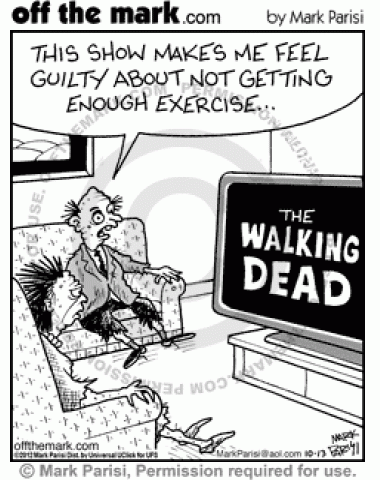 Walking Dead Guilt Zombies watching The Walking Dead feel bad because they don't exercise enough.