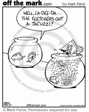 Fish fill their bowl with Alka-Seltzer for a jacuzzi.