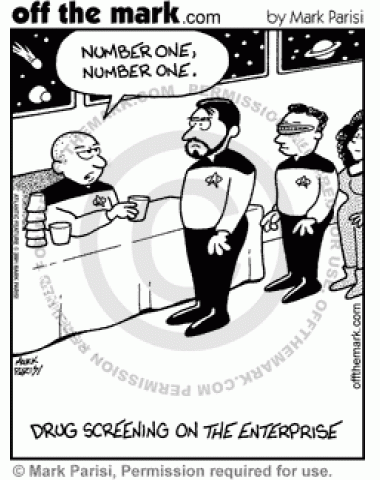 Enterprise Drug Screening Captain Picard conducts drug screening on the Enterprise.