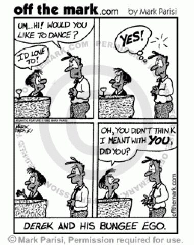 Dating Bungee Ego Derek asks woman if she'd like to dance, she says yes, then says,