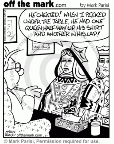Cheating Cards A pair of cards go to couples counseling because the king had other queens in his clothes.