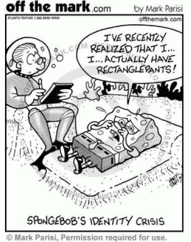 SpongeBob Identity Crisis SpongeBob has an identity crisis when he realizes he wears rectangle pants.